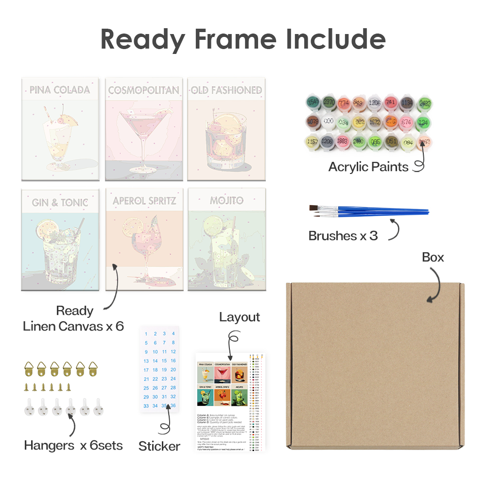Descubre todo lo esencial perfectamente empaquetado en nuestro kit de Pintura por Números. Con cada componente etiquetado y listo para usar, podrás centrarte únicamente en tu viaje artístico. Desde las pinturas vibrantes hasta los pinceles de precisión, nos hemos asegurado de que nada se interponga entre tú y tu lienzo. Adecuado tanto para principiantes como para artistas experimentados, este kit ofrece una experiencia de pintura pura y sin interrupciones.