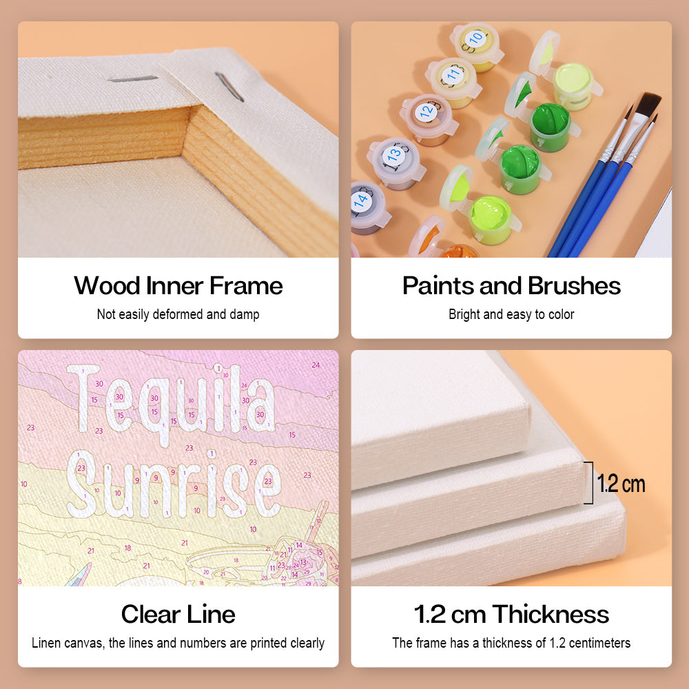 Descubre todo lo esencial perfectamente empaquetado en nuestro kit de Pintura por Números. Con cada componente etiquetado y listo para usar, podrás centrarte únicamente en tu viaje artístico. Desde las pinturas vibrantes hasta los pinceles de precisión, nos hemos asegurado de que nada se interponga entre tú y tu lienzo. Adecuado tanto para principiantes como para artistas experimentados, este kit ofrece una experiencia de pintura pura y sin interrupciones.